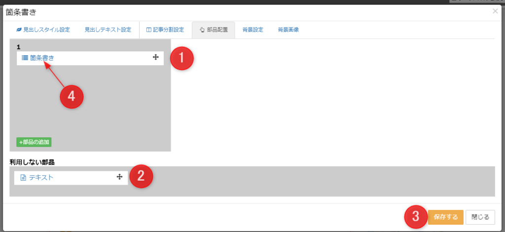 プレビューから見出しの編集を開き「部品配置」を押します。